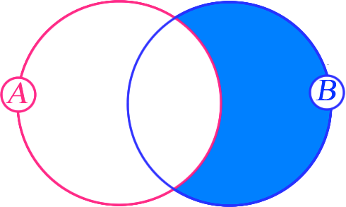 Em termos de Diagrama de Venn, o conjunto complementar de `A` em relação a `B` é indicado pela região interna em azul.