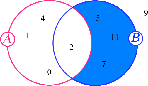 Assim, dado que `A = {0, 1, 2, 4}` e `B = {2, 5, 7, 11}`, o enunciado pede `B-A = {2, 5, 7, 11} - {0, 1, 2, 4} = {5, 7, 11}`. Basta 'eliminar de `B` os elementos que comparecem em `A`.