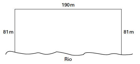 Para o reflorestamento de uma área, deve-se cercar totalmente, com tela, os lados de um terreno, exceto o lado margeado pelo rio, conforme a figura. Cada rolo de tela que será comprado para confecção da cerca contém 48 metros de comprimento.