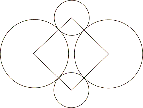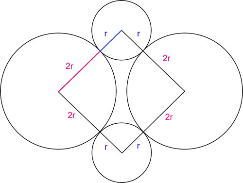 Dobrando-se o raio de duas das circunferências centradas em vértices opostos do losango e ainda mantendo- -se a configuração das tangências, obtém-se uma situação conforme ilustrada pela Figura 2.